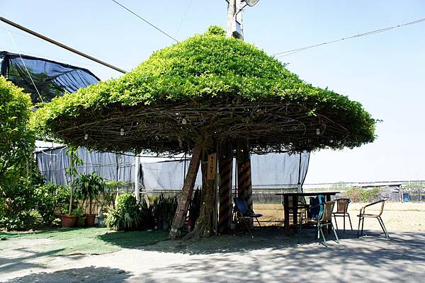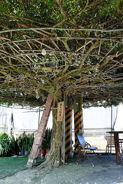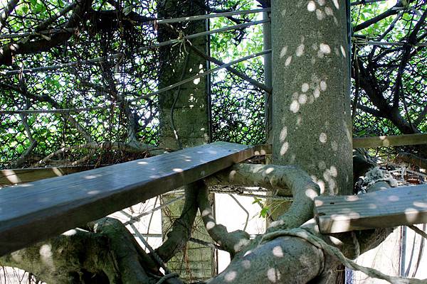 看到樹下得梯子就可以猜到,這是樹屋,樹上是大約可供6~8個人乘坐納涼的空間。這是很受歡迎的設施,大小朋友都會到這裡爬到上頭坐坐聊聊再下來。