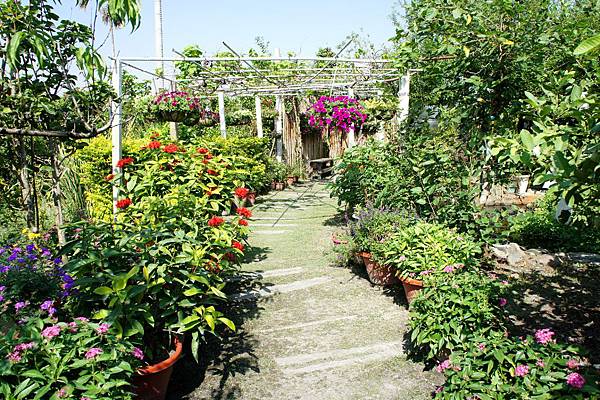 通過小橋流水,是農場內的花卉區與休息區。