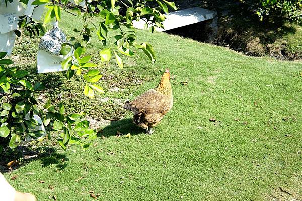 在採果趣的時候,還會看到農場四養的雞在果園裡穿梭。