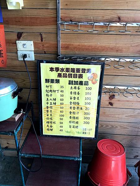 這是農產品價目表,因為是觀光果園性質,所以來到這通常都會採果,採多採少都可以,而價目表就非常重要,每種品項價格都不盡相同,進入果園以前最好先過目。