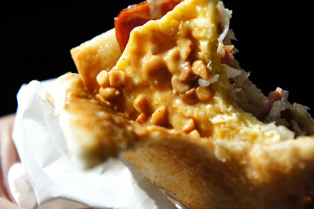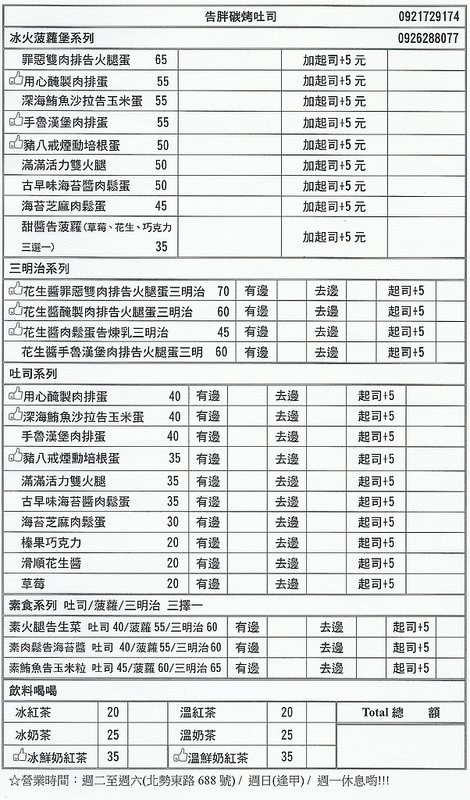 ▲接下來要推薦的是告胖碳烤吐司,告胖平常出現的位置在鄧家香牛肉麵門前,最著名就是料超多的豪華版三明治,吃一個就飽足感爆表。