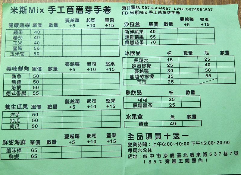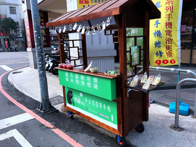 ▲米斯MIX手工苜蓿芽手卷位在國王商圈內,上午如果天氣好會推餐車到路口營業,因為不一定會出現,所以算是隱藏版的早餐。