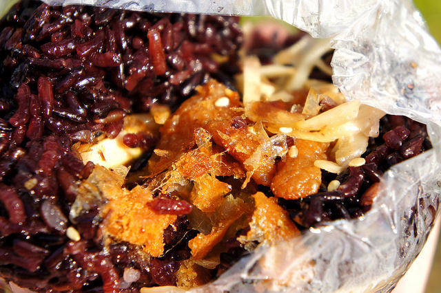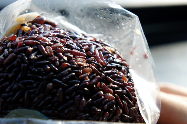 ▲紫米飯口感比較Q,而且富含有抗氧化的花青素,偶爾吃對身體還不錯喔。